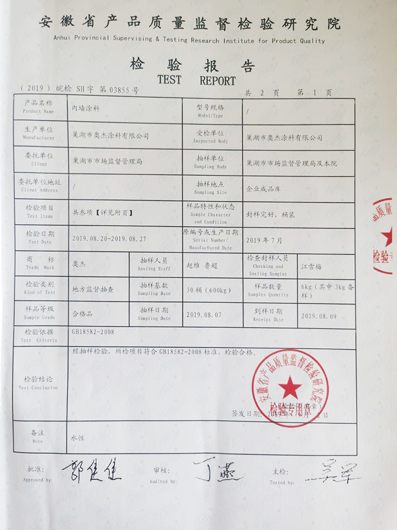 內(nèi)墻涂料檢驗(yàn)報(bào)告